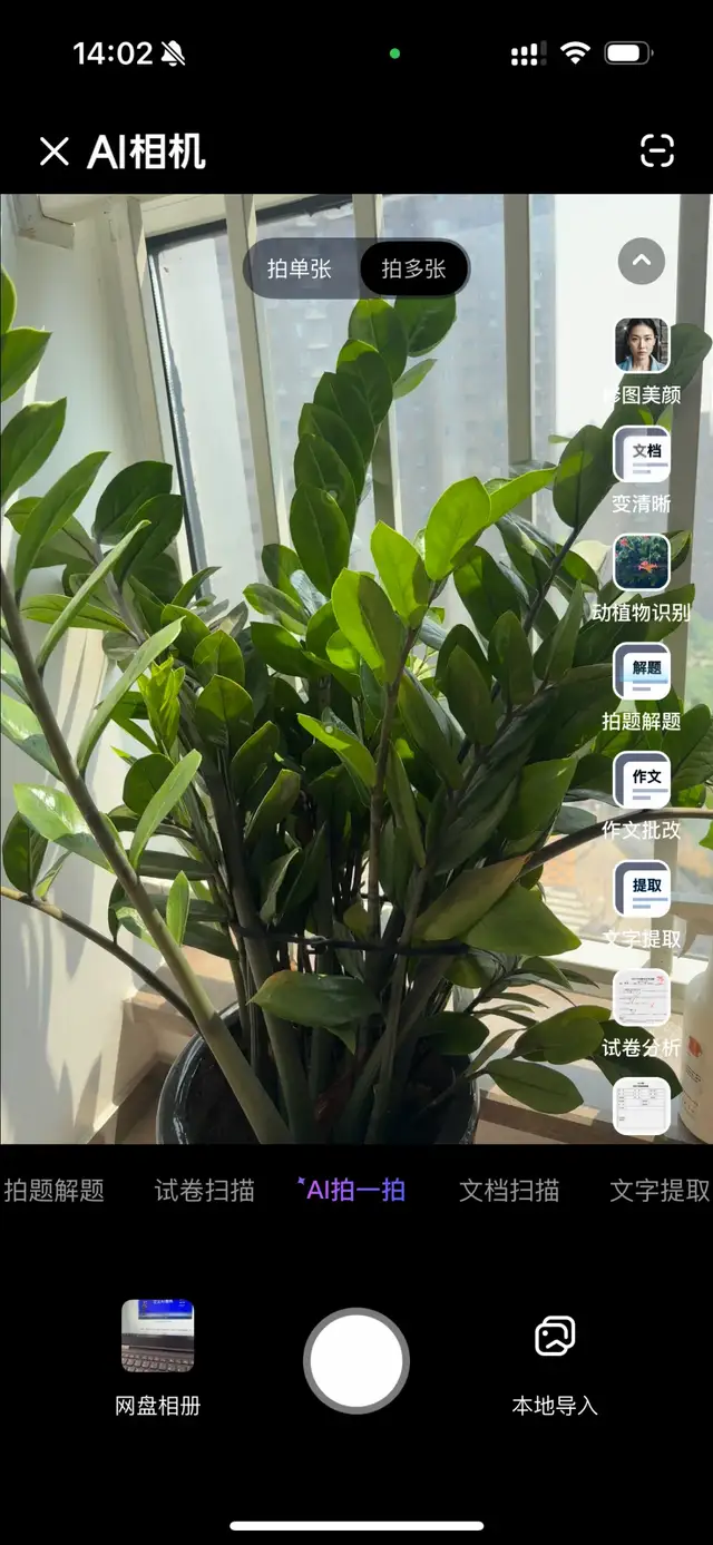 该功能既有修图美颜、风格创意等基础操作,也可以进行动植物识别、景点讲解,还能拍题解题、作文批改、文档扫描,甚至还能根据拍图直接生成小红书、朋友圈文案。可以说,功能应有尽有,实现了生活、学习、工作的全场景覆盖。